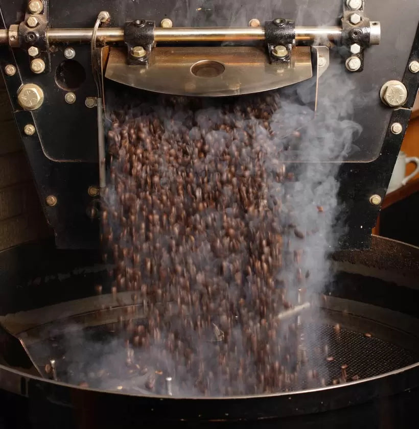 Roasting, which takes place at between 190° and 230°C, transforms green coffee beans into lighter, brown, perfumed beans. In this phase the sugars are caramelized, the cellulose is carbonized and the volatile compositions that create the roasted aroma are formed.